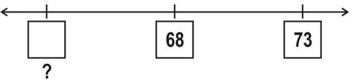 Question. On the number line below, 68 is mid way between 73 and the number in the empty box. What number comes in the empty box?